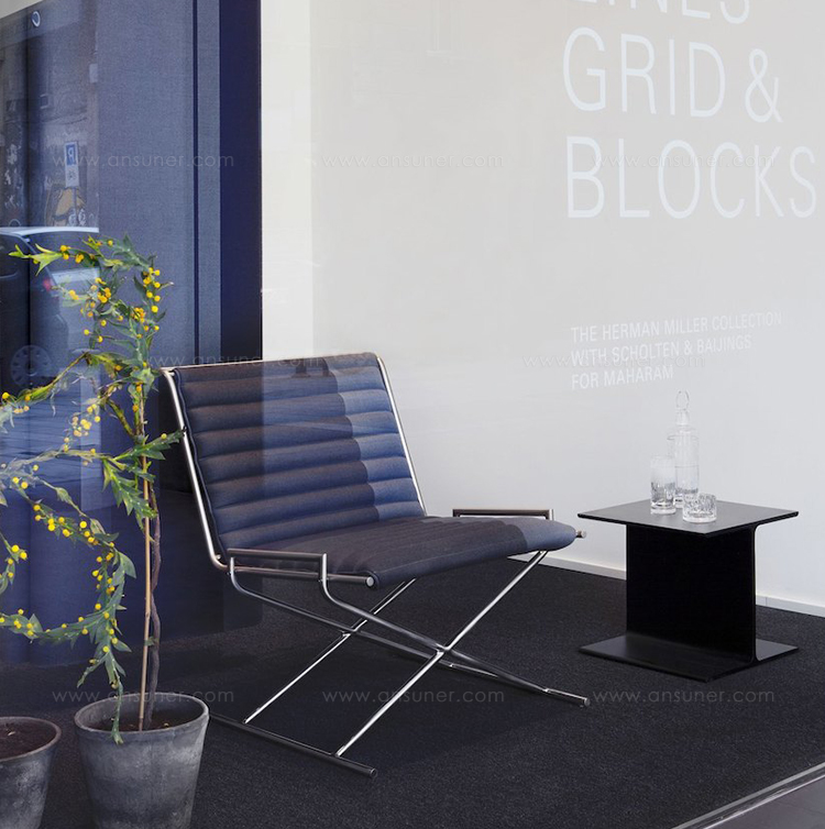 Ward Bennett Sled座椅的底座设计十分引人注意。用钢管焊接成一个X形,安装在平行的双轨之上,设计十分大胆。可选装饰有各种织物或皮革,Sled座椅座位和靠背就像一个摇篮,将就坐者环绕起来。独特的设计和惬意的舒适度是让Sled座椅从1966年流行至今的两大原因。
