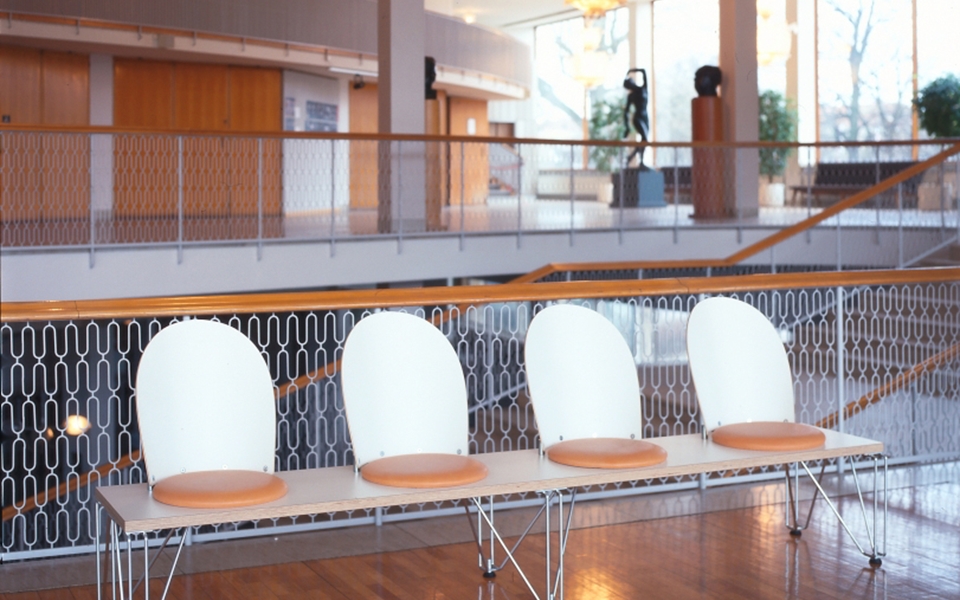 伯格·林道· 约翰·林道(Börge Lindau, Johan Lindau)共同设计GATE,大门是公共区域的可链接长凳系统。长凳可提供直式座椅。这些座椅可根据需要配备靠背和/或座椅。座椅:圆形或直形软垫。实心桦木,40毫米厚。镀锌钢框架。皮革或织物覆盖的软垫座椅。阻燃聚醚泡沫塑料内饰。座椅高度420毫米,总高度890毫米(包括靠背),总深度460 mm,Ø390毫米,CC座650毫米,长,2座1200毫米,长度,3座1800毫米,圆形,1,5座45°,圆形,2座60°。