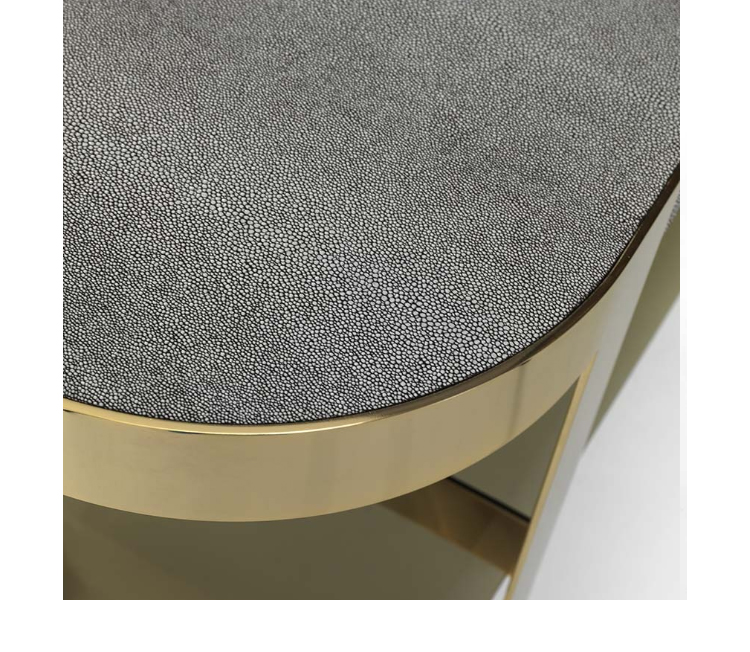 一种控制台,其基本轮廓将大理石或皮革与玻璃和金属相结合,以达到形式上的完美。