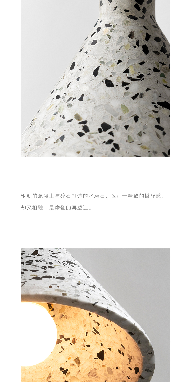以材质再生为基本手段的水磨石系列,将陶瓷废渣再生成简洁形态的日常性家具,以衍生产业的形式回归到大众层面的使用中。 中国佛山,这片拥有全球最大最成熟的陶瓷产业链和产业集群的建筑陶瓷工厂的土地,承载着每年400万吨陶瓷废弃物带来的环境污染。 以材质再生融入日常,不仅是激发商业价值的大胆尝试,是环保理念的日常化实践,更是对自我尊严的基本坚守和追求,我们探寻陶瓷跨越地域局限的一种当代突破!