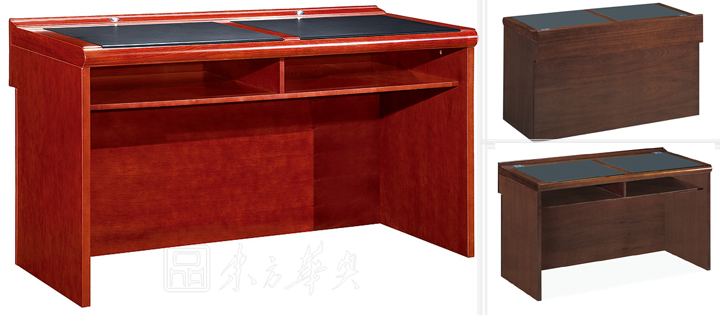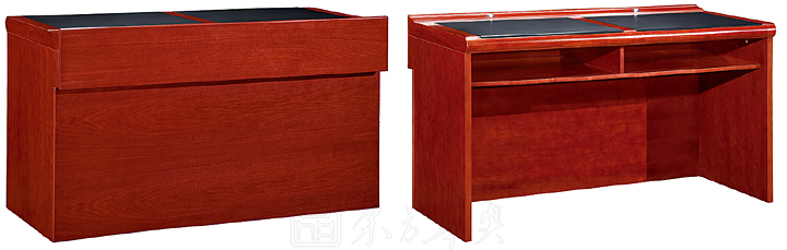 ※  全木制结构条形桌,桌脚可做直形及弧形,下设空格储物空间,内嵌式皮垫写字板,麦克孔,满足不同需要;