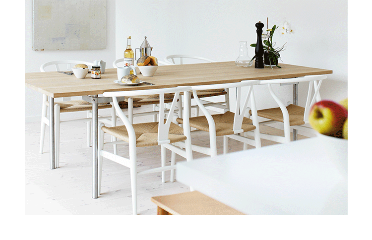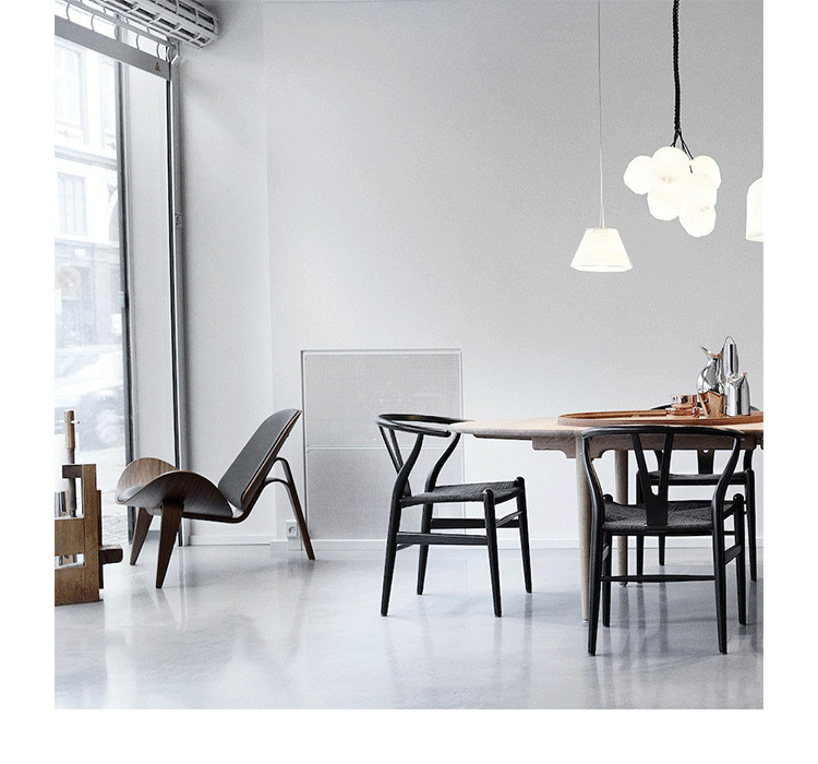 Y椅子是Hans J.Wegner最著名的作品。 它具有重量轻、有吸引力、舒适、中式风格等特点。 该款设计灵感来源于中国传统家具,四平八稳,古色古香,大气自然。上圆下方,浑然天成,深受中国顾客喜欢。Y椅关键在于是工艺与简约的设计,有着清晰的线条。 尽管椅子简约的外观要超过100个步骤进行。除其他事项外,手工编织座垫超过120米的线。 材料有丹麦硬木(橡木,榉木,水曲柳)以及北美硬木(胡桃木,樱桃木)等。外表可漆成各种各样的颜色。 垫子的座位可以添加额外的舒适。