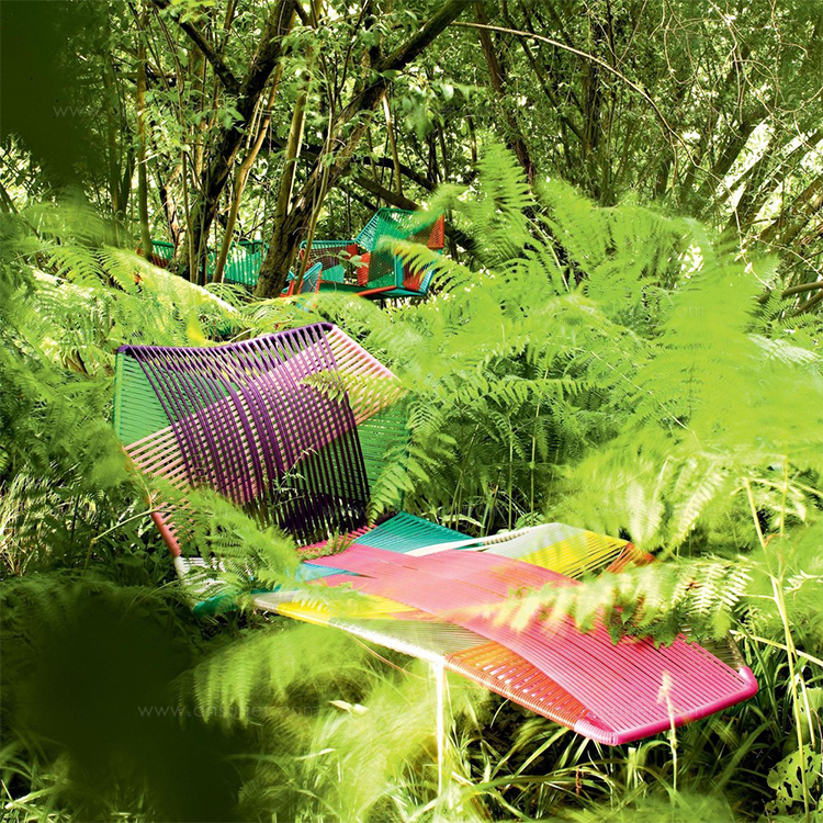 安蒂博迪(Antibodi)的钢管框架成为设计师用于创意改造的起点。框架被包裹和变换,座位根据所使用不同颜色的材料呈现不同的个性。两到三种颜色的线条以螺旋的方式将钢管包裹起来,形成了一种有趣的颜色复杂的设计。
