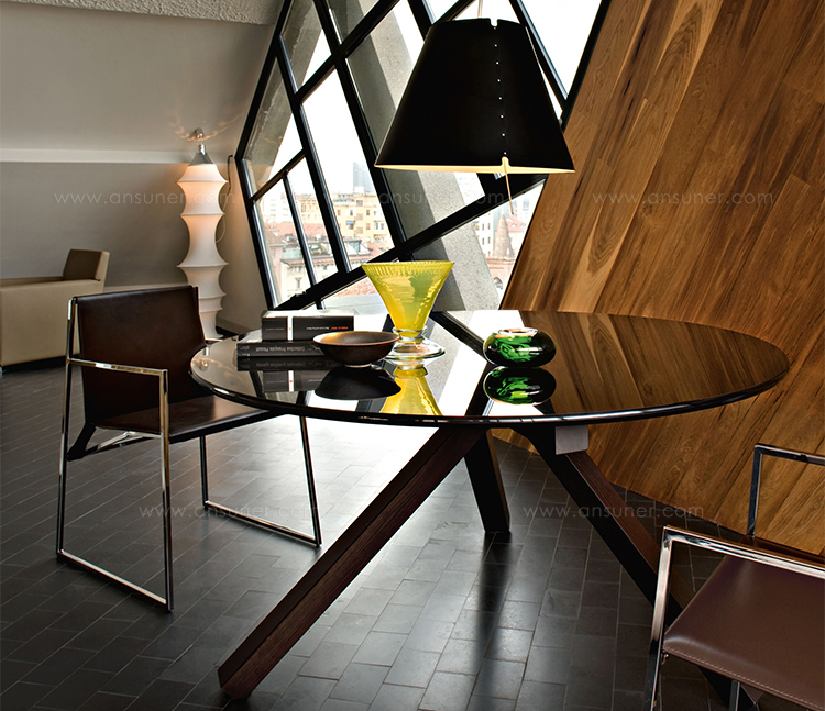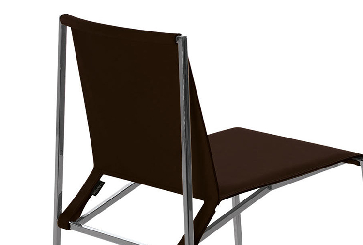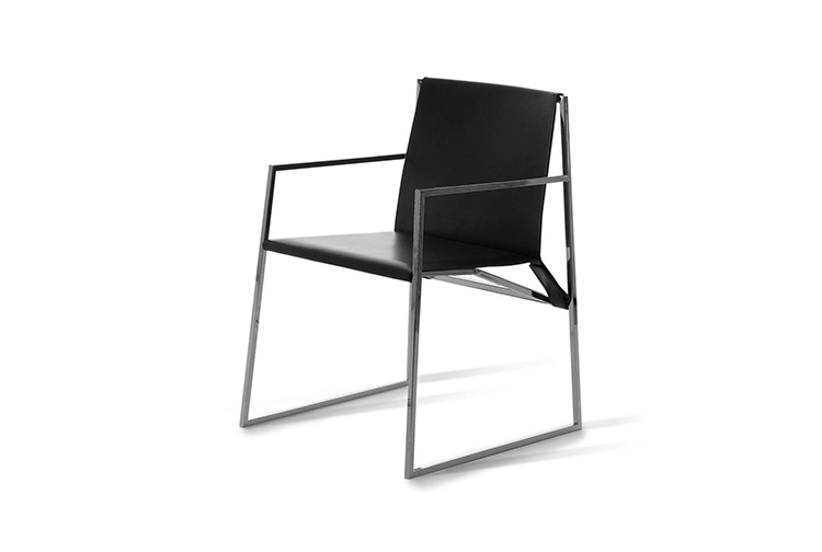 几何和简约的线条勾勒出了这种朴素典雅的椅子。这种金属结构,在抛光铬、云母棕或氧化灰色中都有,而且座椅和靠背可以用人造革或皮革制成,这是一件奢华而又谨慎的作品,适合周围的每一个人。