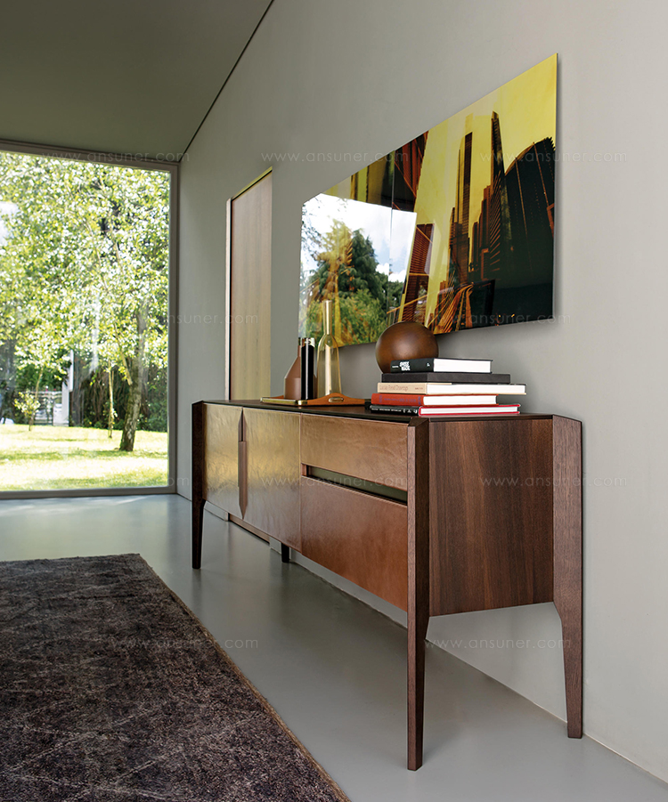 完成最低生活的家具, 但也为一个更经典的住宿, 是由 Manzoni 和 Tapinassi 的荣耀餐具柜, 在莫卡, 卡纳莱托核桃或 Sucupira, 用金属零件涂在云母颜色或镀锌钛, 与印记很纯洁门和抽屉可以用植物皮革覆盖。