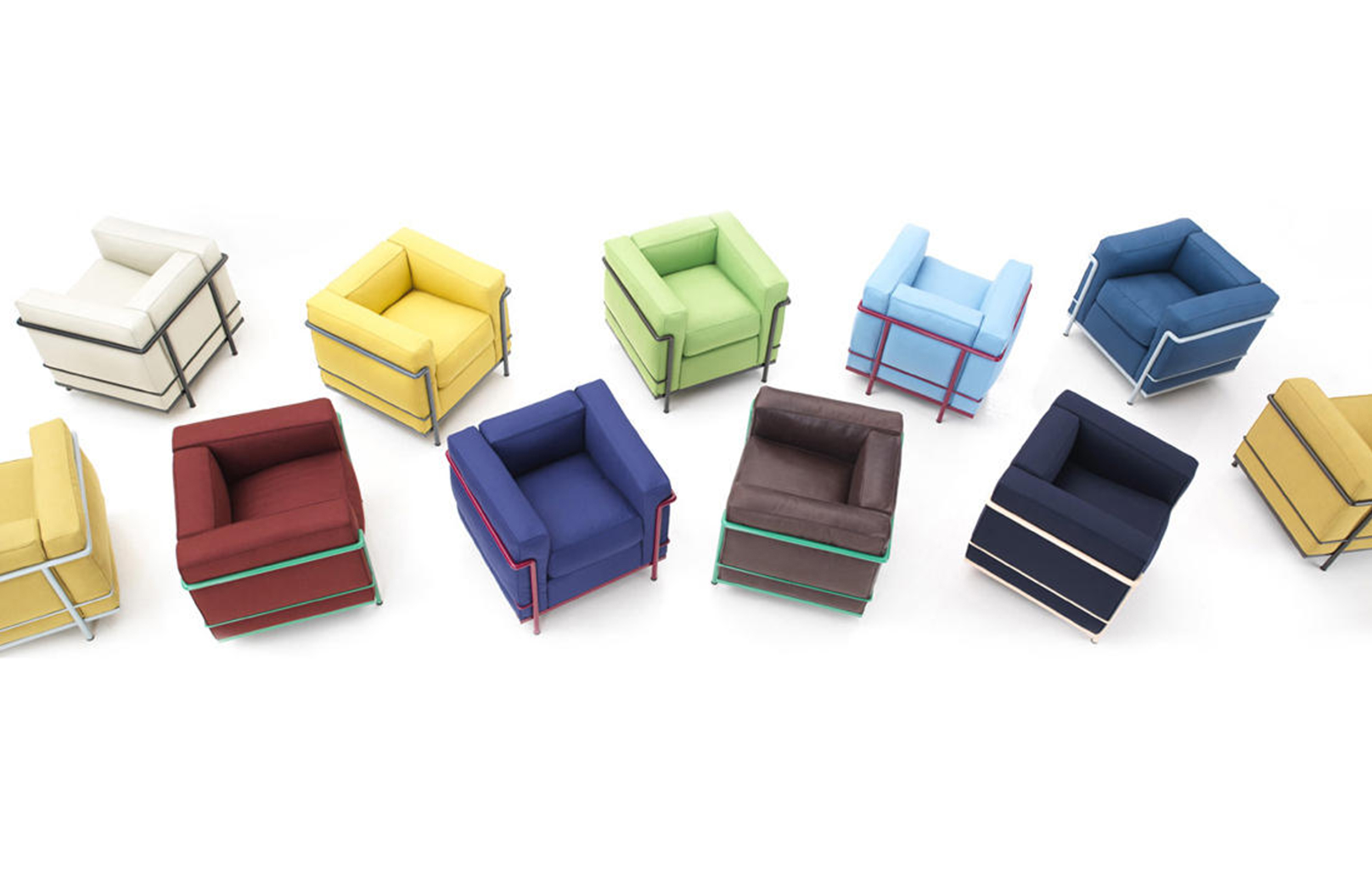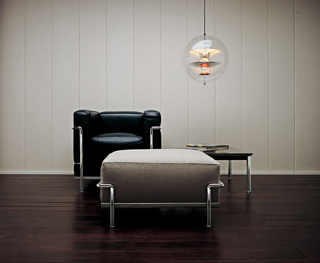 采用CR3三价镀铬钢结构或哑灰色、浅蓝、绿色、棕色、泥土色、象牙白色或黑色珐琅钢架的扶手椅,两人位或三人位沙发及脚凳。柔软的衬垫采用聚氨酯海绵和喷胶棉或聚氨酯芯羽绒棉(脚凳除外)。皮革或布艺面料软包套面。还有仅用于镀铬钢架模型的技术微纤维织物。设计史上另一个永恒的经典。于1928年设计的该款是现代椅的原型。内部靠垫与笼式框架的分离是椅子理性方法的具体肯定。真正的经典之作。