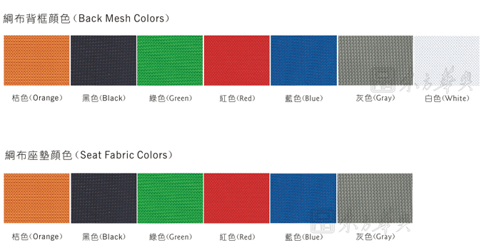 1:椅背及座面材质:采用高張力網布,具有透氣性強、彈力強及不助燃等特點。