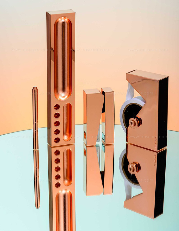 立方体订书机是由铝合金制成,镀铜和漆器完成。侧面的细微凹痕会使你牢牢握住。与我们的立方体胶带分配器,书桌整洁和钢笔,可作为一套,并以礼盒包装。