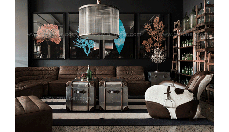 "慵懒、我行我素、精致、时尚,还有那么点怀旧的味道,Timothy Oulton家居的产品就是用这些无可替代的特点,征服了各国的英伦家具爱好者们。重提浪漫时代的长长的豪华海上航行,Globetrekker 系列的灵感来自Timothy Oulton于1914年在一个古董市场发现旅行箱,他深深的被复杂细节和美丽的黄铜板的旅行箱迷住了,Oulton拆解了那个古色古香的旅行箱并进行重新设计出一系列作品,它涵盖的灯表、 箱子、 咖啡桌和书柜等集合。捕获真正的魅力,还原精致工艺的旧古董皮箱的精髓,通过怀旧的贴纸饰面样式,采用老木、优质的老式皮革和黄铜铰链,通过精湛的手工处理完成了这套系列。
