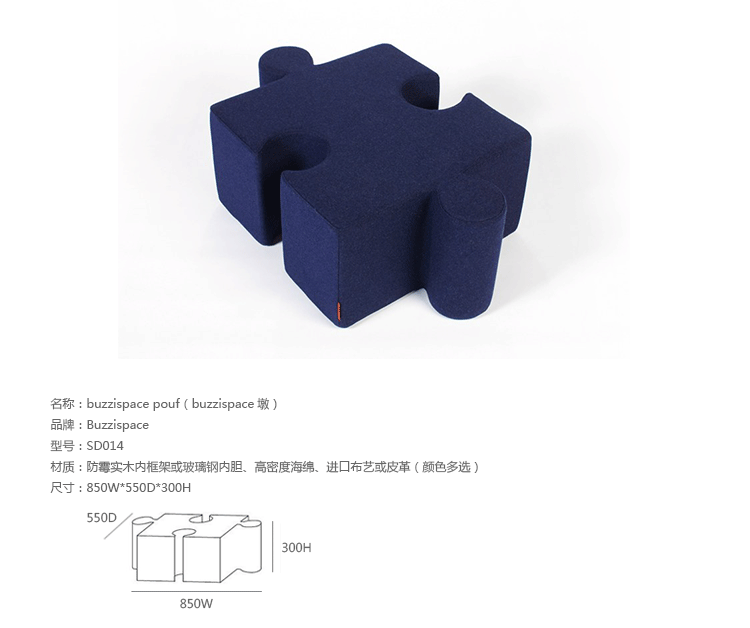 Buzzispace Pouf(Buzzispace墩)能给你带来愉悦和享受。凭借其革命性的形式和高科技的生产工艺,它成为同类产品中的佼佼者。制作采用防霉实木内框架或玻璃钢内胆、高密度海绵、进口布艺或皮革(颜色多选),柔软舒适,做工精细,触感美妙。