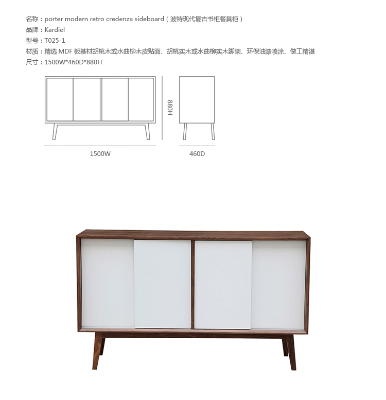 porter modern retro media coffee table(波特现代复古媒体咖啡桌)是Kardiel公司制作的经典实木家具,具有世纪中期的现代风格,咖啡桌下面左右滑动的抽屉可以兼具书柜及存储功能。制作采用精选MDF板基材胡桃木或水曲柳木皮贴面、胡桃实木或水曲柳实木脚架、环保油漆喷涂、做工精湛。