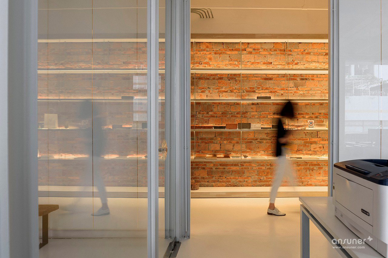 主要材料:超白玻璃、工字钢、橡木、红砖、白色环氧树脂地板、麦秸板
