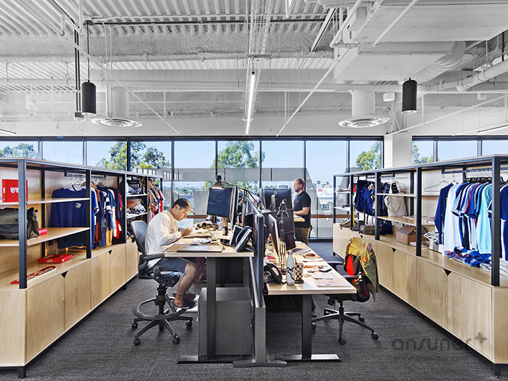 在这样一个团队作战的工作环境中,员工依旧拥有大量的个人空间去展示新产品、纺织面料和制作模型。独立的工作社区也让位给更多的共享空间,共享的专注工作空间、多样的团队协作区、一对一的谈话间等,多元化的设计让任何一种需求都可在这里自由的进行。
